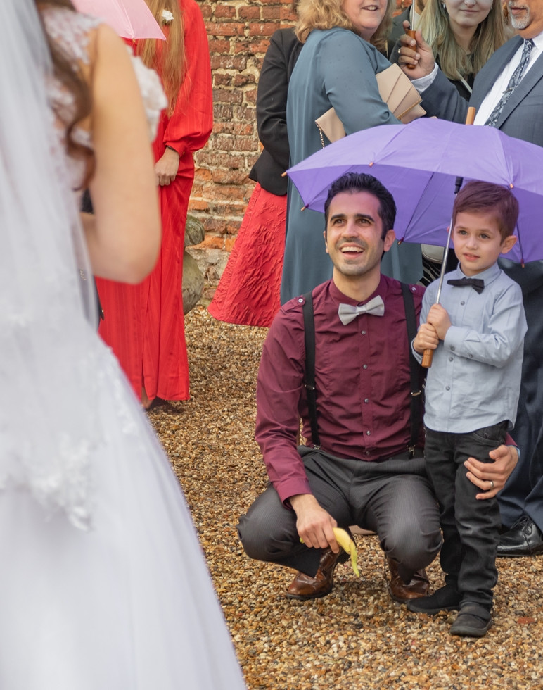 The day of Courtney and Flynn's wedding was dull and overcast with rain predicted later on, so we made sure to have all our umbrellas with us, along with all our usual equipment.